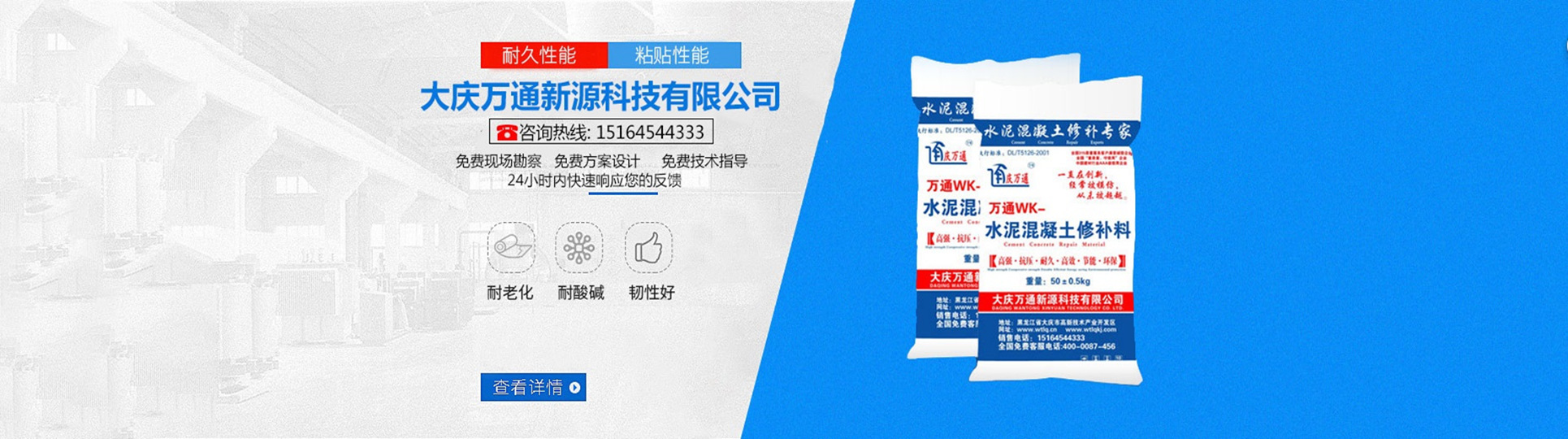 大慶萬通新源科技有限公司獨有的混凝土路面高強速補料,是水泥混凝土路面病害修復(fù)的好材料。疲勞、凍融循環(huán)、彎曲壓力、滲水和基層破壞等原因都會引起水泥路面的破損,從而帶來高昂的維護費用。與以往的剛性修補方法不同,混凝土水泥路面維修速補膠提供了一種獨特的柔性修補產(chǎn)品和技術(shù),高柔性、高抗拉性,可跨伸縮縫施工和高抗壓性使得混凝土快補產(chǎn)品為水泥混凝土路面提供了******性的修補。傳統(tǒng)的剛性修補方案,如環(huán)氧砂漿和快干水泥產(chǎn)品,由于其自身的粘結(jié)失效,抗疲勞性低以及與原路面不同的伸縮系數(shù),修補面會在短時間內(nèi)失效或產(chǎn)生新的裂縫,需要反復(fù)修補,有效期短且費用高昂。大慶萬通新源科技有限公司的混凝土水泥路面維修速補膠可以隨原路面一起伸縮,移動,從而避免了粘結(jié)失效和產(chǎn)生新裂縫。萬通快補產(chǎn)品優(yōu)異的粘結(jié)性、柔韌性和高防滑性,特別適用于水泥路面的淺層粘合修補,多邊角混凝土板層修補,跨伸縮縫修補以及路面沉陷修補。萬通混凝土病害修補料針對混凝土起皮起沙、斷板裂縫、蜂窩麻面、坑槽露石子、漏筋掉皮、橋梁的掉皮漏筋快速通車使用時間長。應(yīng)用萬通快補產(chǎn)品,施工后一天就可以恢復(fù)交通。大慶萬通新源科技有限公司的萬通水泥路面維修速補膠適用于高速公路、機場路面、農(nóng)村村村通路面、廠坪、學(xué)校操場、市區(qū)公路、小區(qū)路面、橋梁、水泥路面的修補。使用萬通特快補材料修補路面可以一勞永逸! 水泥地面起砂怎么辦,混凝土修補劑混凝土地面起砂,混凝土地面修補,地面起砂怎么辦,